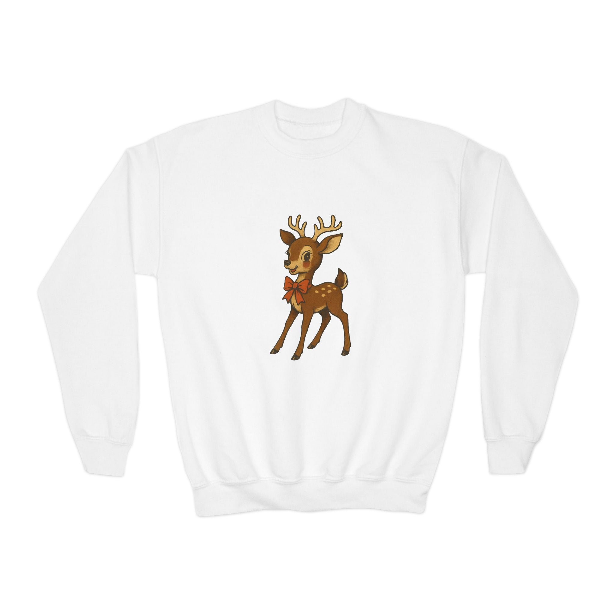 Embrace the cozy vibes of chilly days with this Youth Crewneck Sweatshirt. Perfect for school days, playdates, or lounging around the house, it combines comfort and style effortlessly. Crafted for kids, this sweatshirt is designed to keep them warm without compromising on style. Its whimsical reindeer design adds a delightful touch, making it an ideal gift for the holiday season or winter celebrations. Perfect for birthdays, Christmas, or just to show love during the colder months. Young ones will love the lightweight feel and loose fit, making it perfect for layering or wearing on its own!